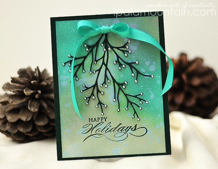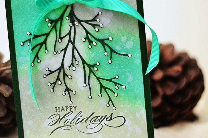 The die that I used is Penny Black‘s Nature’s Song, the sentiment comes from Winter Wonders. The ‘berries’ are little dots of Liquid Pearls, which I added to the end of each branch.