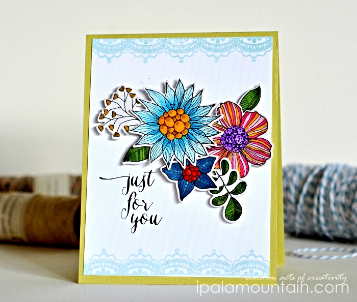 Your JUST for FUN cards dotay are some of my FAVORITES that you have made all year! The colors on the PAINTED FLOWERS is STUNNING! LOVE the pop of POOL blue on the label. DOODLIE-DO is one of my favorite sets to play with as well. Always good to see what you come up with. GREAT dimension on the partial cutting. The color randomness on the final card is very passionate.
