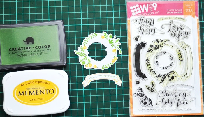 I used the Woodland Wreaths stamp set with coordinating die (WPlus9) to create the wreath. I stamped with Pure Color inks.
