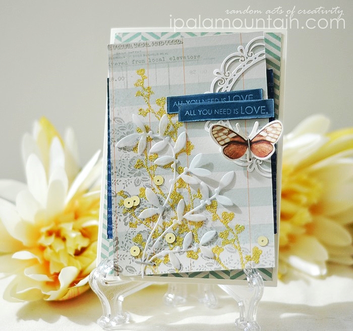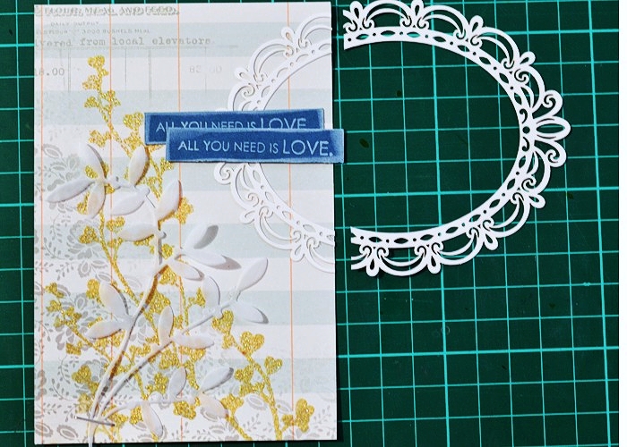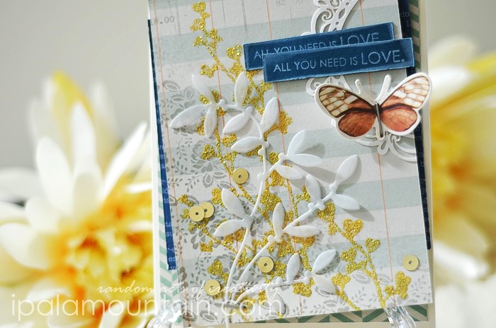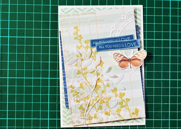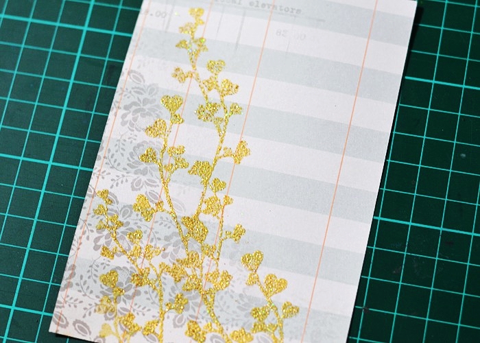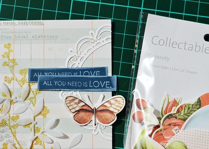 So I started by combining two designs from Glitz Design Carpe Diem 6×6 pad, on a WPlus9 Kraft card base.