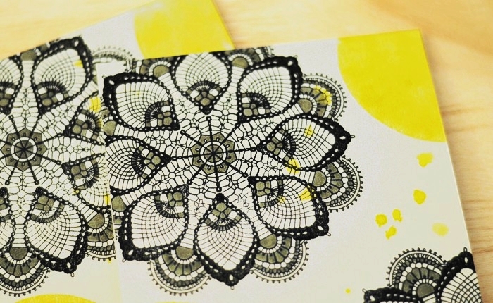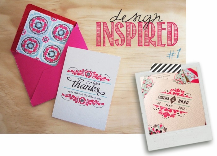 I take a design piece that inspires me (be it stationery, clothing, packaging, etc.), and translate it into a custom paper-craft design, using predominantly stamps and ink. I take great joy in letting what I see around, influence my designs, and I want to show you how easy it is. I collect the inspiration in my Pinterest board especially created for this purpose, and pick a piece from the lot for each installment of this feature.
