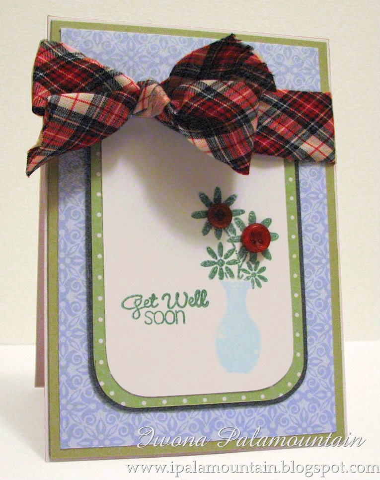 Supplies: cardstock: Quill; papers, stamps: Grant; ink: Versa Color Green; ColorBox Ice Blue; ribbon, buttons: stash