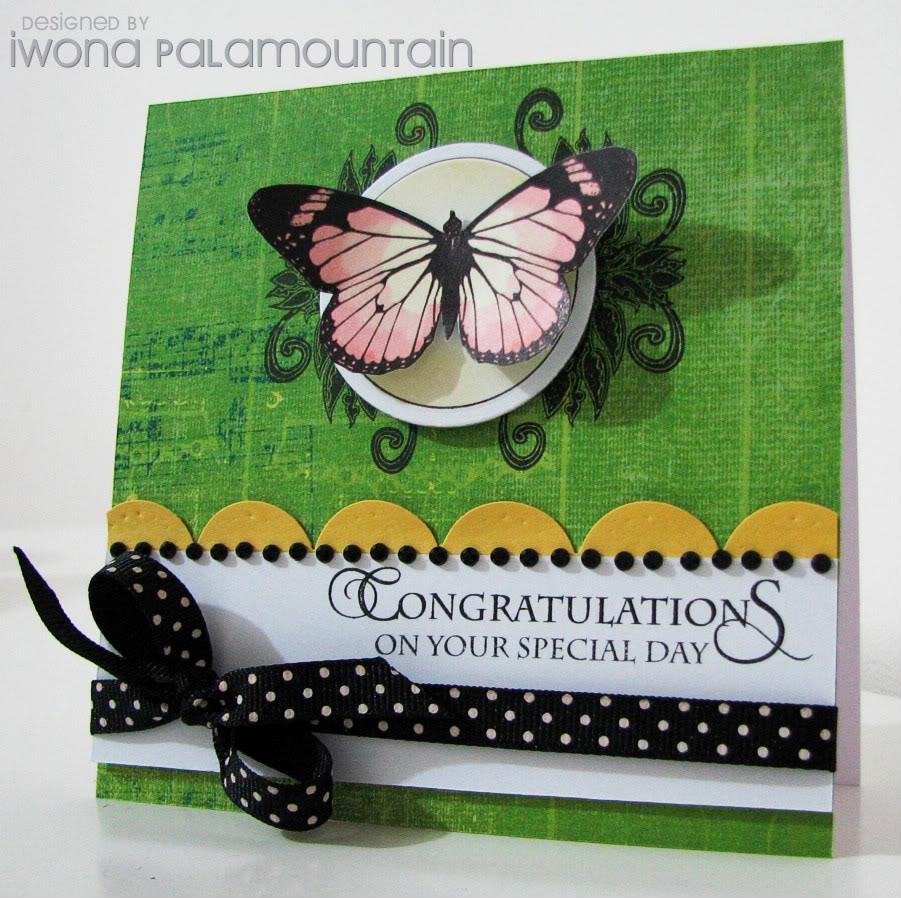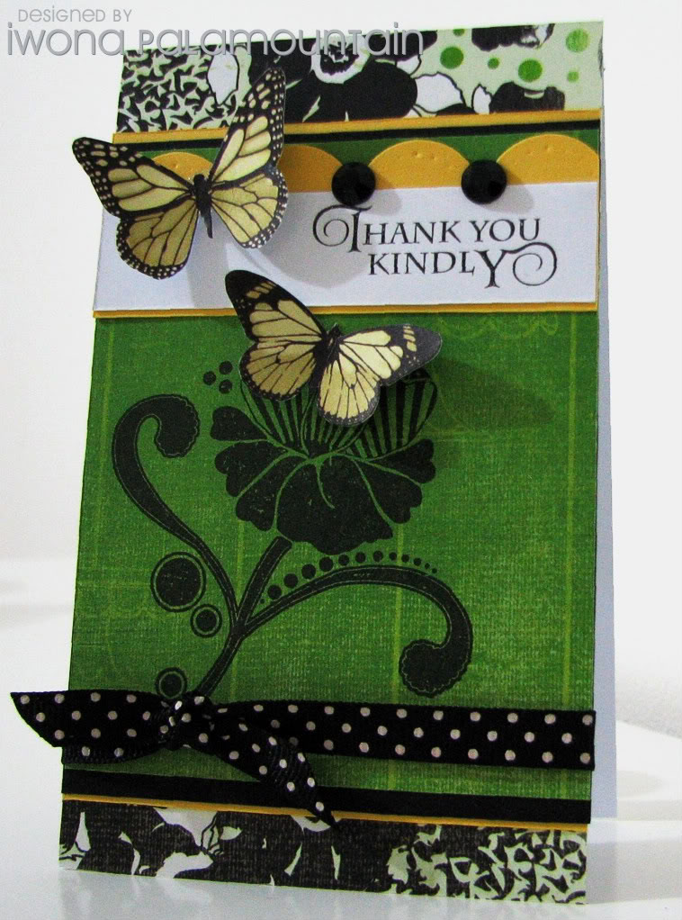 other: cardstock: white, Stampin’ Up! (Daffodil Delight), American Crafts (black); sentiment stamp: Layers Of Color; ink: Versafine (Onyx Black); butterflies: Collections; black polka dot ribbon; border punch: EK Success