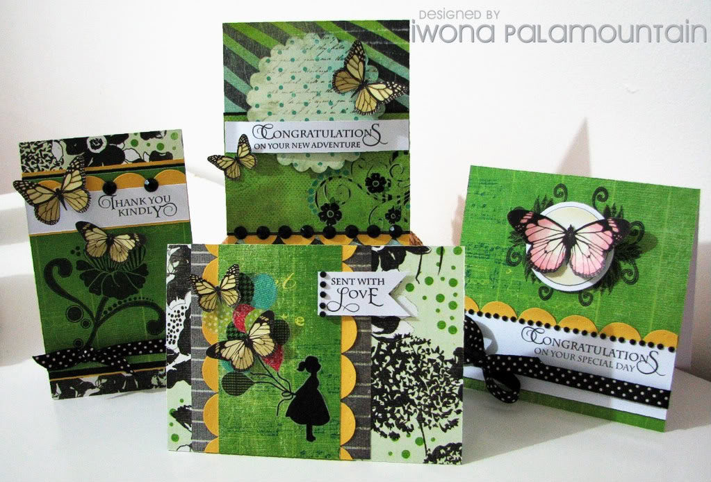 These are all unique, gorgeous cards, Iwona! I love the hip look. They are creative, colorful, interesting, very eye catching, yet simple…excellent designing!