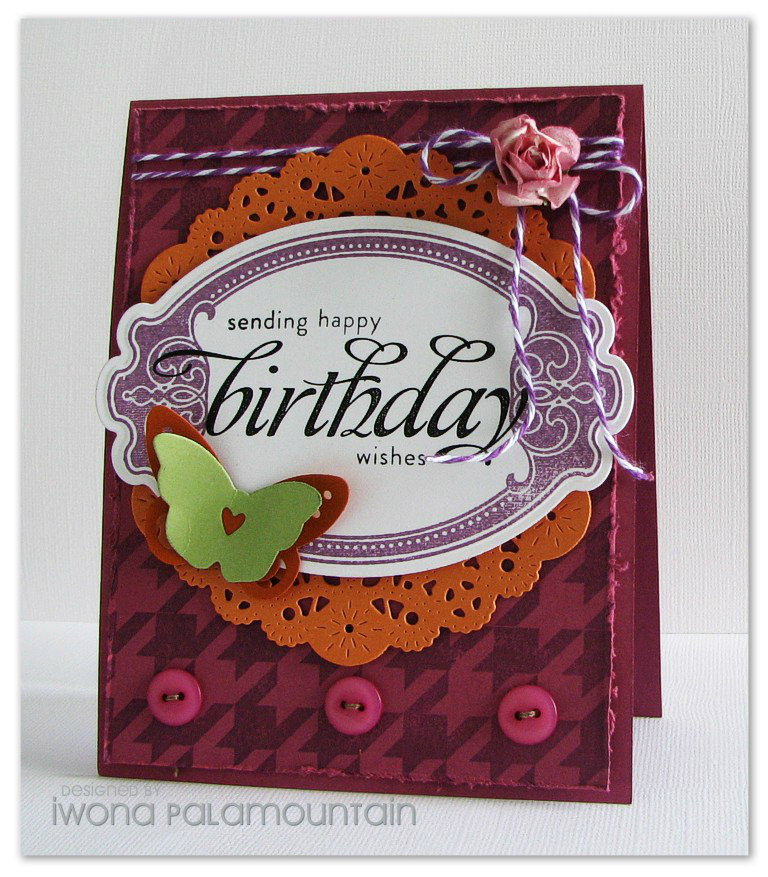 I used some other dies too, French Pastry Doily from Cheery Lynn, and the butterflies from PTI and Cristina Re (the latter is a punch, actually).