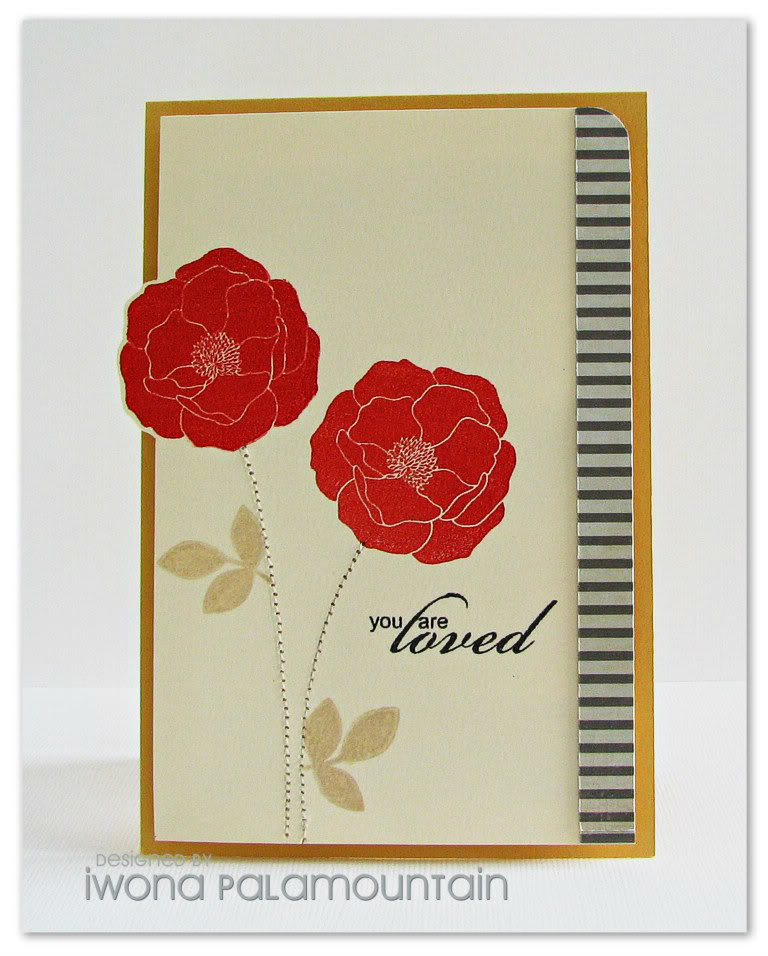 Love the stitching on your card, and the red flowers really pop. The striped border creates a really nice contrast too.