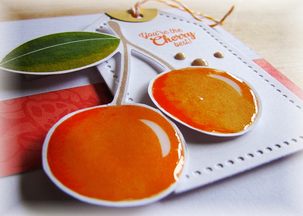 For the next card, also mixy & matchy in style, I inked up the polka dot cherry from the Big Berry - Cherries set, and created a background with it. I wanted to experiment with a careless / artsy look so I tapped the ink pad only lightly, and didn’t press much against the paper. The result is quite cool, the imperfections actually added a fake dimension to the circles and made them look like balls 🙂