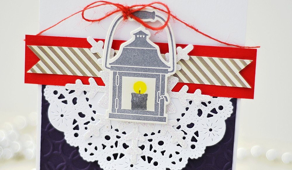 Next up, a white-on-white card, with a touch of silver. I combined here Spellbinders & MFT dies with a Cuttlebug embossing folder and a sentiment from a brand new & gorgeous stamp set from Waltzingmouse - Seasonal Flourish.
