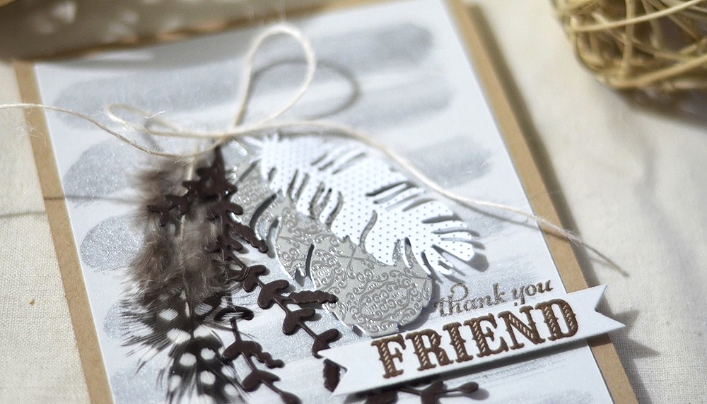 I finished the card with an extra feather (this time a *real* one) and a twine bow.