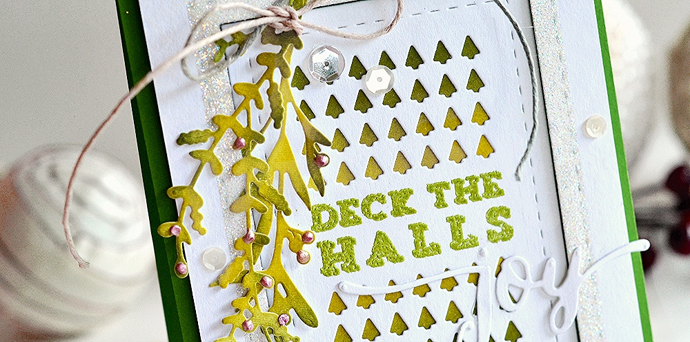 The second card features the new Twenty Fifteen Clear Stamps which I paired with Small Butterfly Frame Die. I wanted to achieve that spectacular double-stamped look that Laura Bassen so effortlessly creates on her cards - alas, my die cut is in retrospection too elaborate for the sleek look I was hoping for.